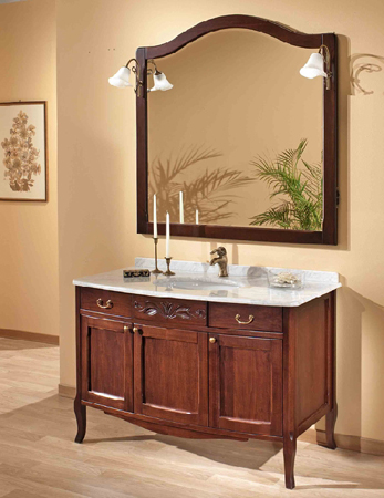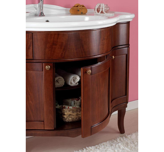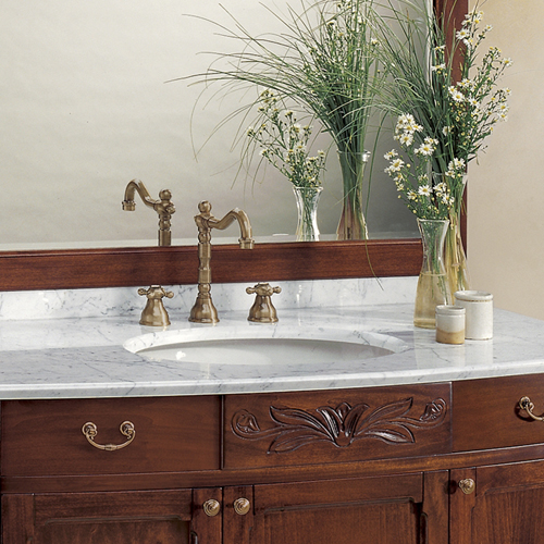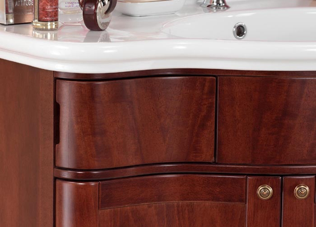 Serie 800 setzt auf eine Weiterentwicklung der klassischen mediterranen Serien. Mit verspielten Schnitzereien und den geschwungenen Füßchen bietet diese Serie Einzel und Doppelwaschplätze in zwei Holztönen oder Antik-Weiß.